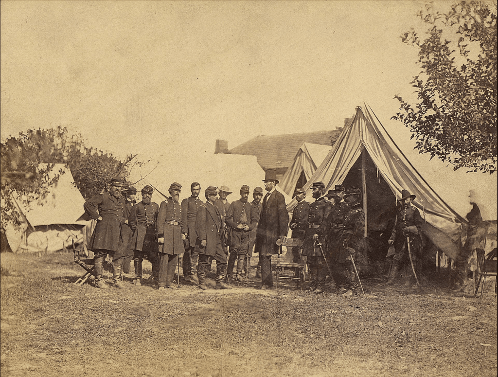 (above) LINCOLN WITH NOTABLE OFFICERS FOLLOWING THE BATTLE OF ANTIETAM.